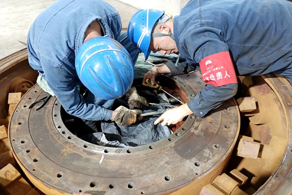 人員少,工期緊,任務重,這些猶如大山壓頂,行路堪難,尤其中期防磨防爆,班組還抽出了絕大部分主力,讓境況更是雪上加霜,但是這絲毫沒有將他擊垮,帶著寥寥幾人,繼續(xù)檢修任務??梢詺缥遥墙^對不會打敗我,就算只剩“一兵一卒”,也誓要披荊斬棘戰(zhàn)至終章。作為班長,不僅是干活,還需要協(xié)調,四處奔走查看情況......電話聲不斷,信息不止是常態(tài):“龍哥,這邊緊銅套需要再安排一個人”“汪班長,明天能進行1號空壓機保養(yǎng)不”“龍哥,這邊空預器吊電機,安排人來協(xié)助下”......似乎等待他停下腳步休息的一天永遠不會到來,即便如此分身乏術,也需迎難而上、砥礪前行。最終圓滿完成一號爐B級檢修與二號爐C級檢修任務:包括一號爐的送、引風機解體檢修、一次風機、除塵器、空預器檢修,二號爐汽水閥門檢修、汽包、撈渣機檢修……一個又一個任務的完成是他這條無畏路上最好的勛章與證明。憶來時,風雨險阻,都已是“回首向來蕭瑟處,歸去,也無風雨也無晴”。