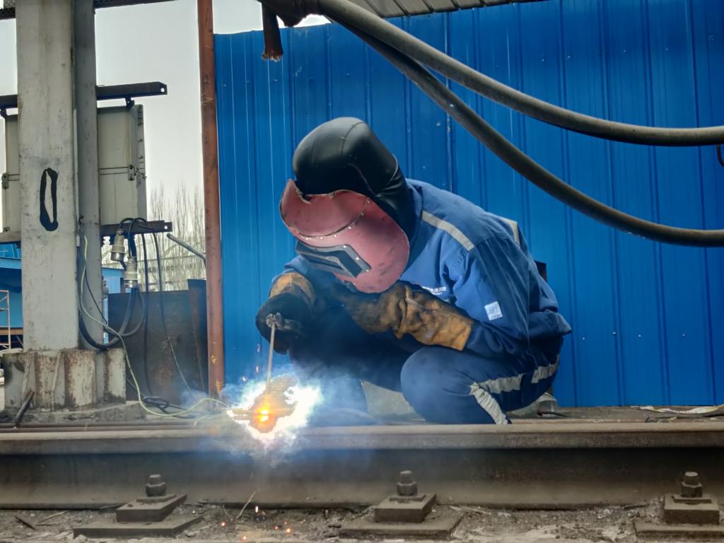 圖為焊接軌道現(xiàn)場