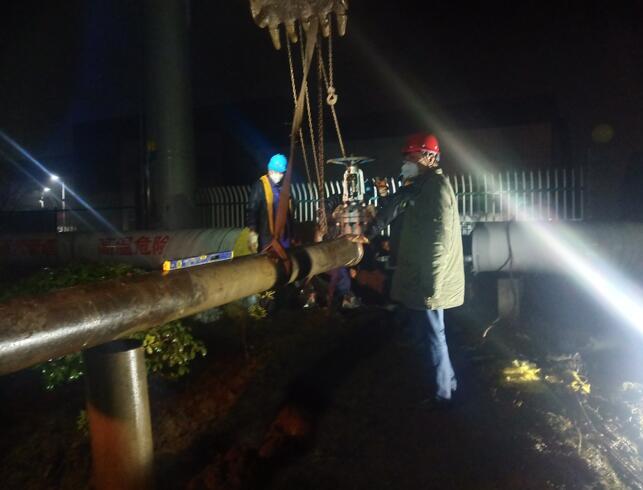 “方區(qū)長要求務(wù)必連夜搶修,確保盡快投產(chǎn)!現(xiàn)在這個非常時期,雙匯食品復(fù)產(chǎn)是重要的民生工程......”“不管風雪多大,保證完成任務(wù)!”向當?shù)卣畢R報得到反饋后,華電蕪湖公司迅速成立“攻堅隊”,按照一級搶險任務(wù)實施進行:確定“改道引管供汽”方案、編制《廠外供熱至雙匯地埋管道消缺方案及安全技術(shù)措施》、組織施工人員及物料到位,連夜施工連夜開工,并由總工、副總工親自現(xiàn)場督陣,全力以赴推進供暖缺陷搶修任務(wù)。