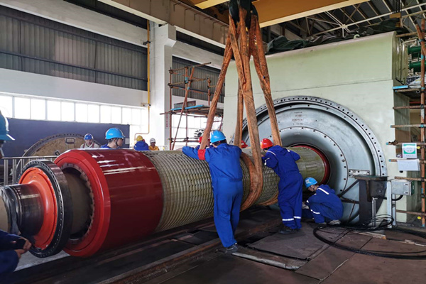 上午10時(shí)10分,隨著起重指揮人員的一聲哨響,發(fā)電機(jī)穿裝轉(zhuǎn)子工作正式開始,穿裝期間,各專業(yè)人員分工有序,密切配合,時(shí)刻注意轉(zhuǎn)子與定子的間隙,及時(shí)調(diào)整轉(zhuǎn)子的傳入量和中心位置,每一步都做到精益求精。整個(gè)穿入過程中,公司各部門負(fù)責(zé)人、專工現(xiàn)場(chǎng)旁站監(jiān)督,協(xié)調(diào)工作,為穿裝轉(zhuǎn)子作業(yè)的順利進(jìn)行,提供了可靠保障。