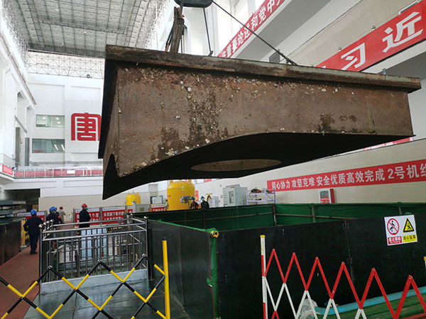 中國電力網訊 近日,內蒙古大唐國際海勃灣水利樞紐開發(fā)有限公司在緊鑼密鼓地開展2號機組A級檢修工作,按照工期計劃安排,現(xiàn)場檢修工作有序推進,施工安全、進度及質量可控在控,開工一周內,流道蓋板已成功吊出。