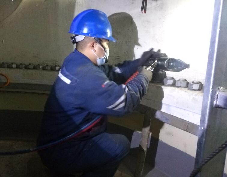 嚴守安全,質(zhì)量過關(guān)。風電場設立專責監(jiān)護人,對作業(yè)過程全程監(jiān)護,對風機定維互助檢修作業(yè)進行全程監(jiān)護,樹立紅線意識,嚴守安全底線,確保作業(yè)人員人身安全。在風電場的安全監(jiān)督下,互助檢修隊嚴格按照風機定維表中要求和現(xiàn)場培訓指導意見,發(fā)揚吃苦耐勞的精神,一絲不茍的態(tài)度,嚴肅認真的進行一臺臺風機的定期維護項目,全面細致地填寫維護記錄表內(nèi)容。截至目前,共完成4臺風機定維工作,在力矩校驗、油脂補充、衛(wèi)生清理等方面均達到合格標準,安全可控在控,質(zhì)量始終如一。