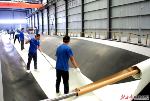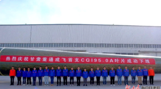 甘肅重通成飛新材料有限公司舉行CGI95.0A首支風電葉片下線儀式。