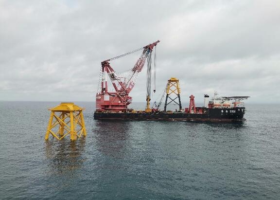 5月5日,中國能建廣東火電順利完成粵電陽江沙扒海上風電項目首臺四樁導管架風機基礎(chǔ)安裝。該導管架高度超50米,總重超930噸,是目前已知國內(nèi)最大最重的四樁導管架風機基礎(chǔ)之一。