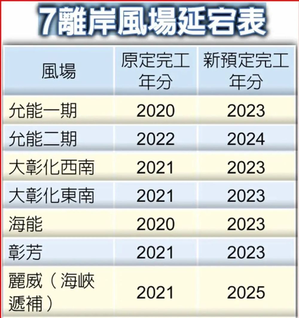 7座海上風(fēng)電場(chǎng)延期表