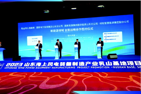 活動現場,乳山與國家電力投資集團山東分公司、國家能源集團投資山東分公司、明陽智慧能源集團股份公司等8家企業(yè)現場簽署合作協議,同時,啟動了國華科技創(chuàng)新中心建設。