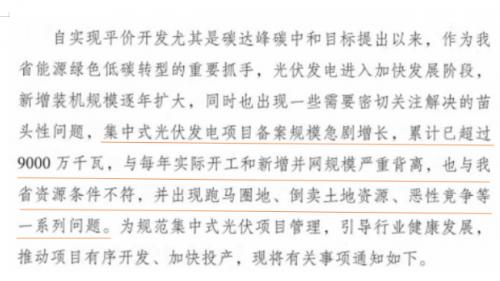 為了證明這一傳聞的真實(shí)性,一些媒體還提到了2022年發(fā)布的文件《關(guān)于規(guī)范集中式光伏電站項(xiàng)目管理有關(guān)事項(xiàng)的通知》。該通知嚴(yán)厲指出,集中式光伏發(fā)電項(xiàng)目備案規(guī)模迅速增長(zhǎng),已經(jīng)超過(guò)9000萬(wàn)千瓦,與實(shí)際開(kāi)工和新增并網(wǎng)規(guī)模嚴(yán)重不符,也與廣東省的資源條件不匹配,出現(xiàn)了跑馬圈地、倒賣(mài)土地資源、惡性競(jìng)爭(zhēng)等一系列問(wèn)題。