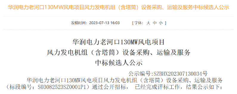 公告顯示,第一中標(biāo)候選人:三一重能股份有限公司,投標(biāo)價格:283370000.00元。第二中標(biāo)候選人:新疆金風(fēng)科技股份有限公司,投標(biāo)價格:285439400.00元。