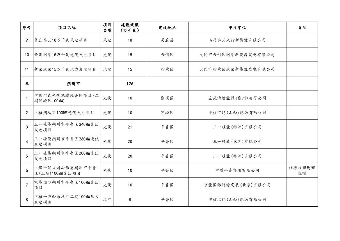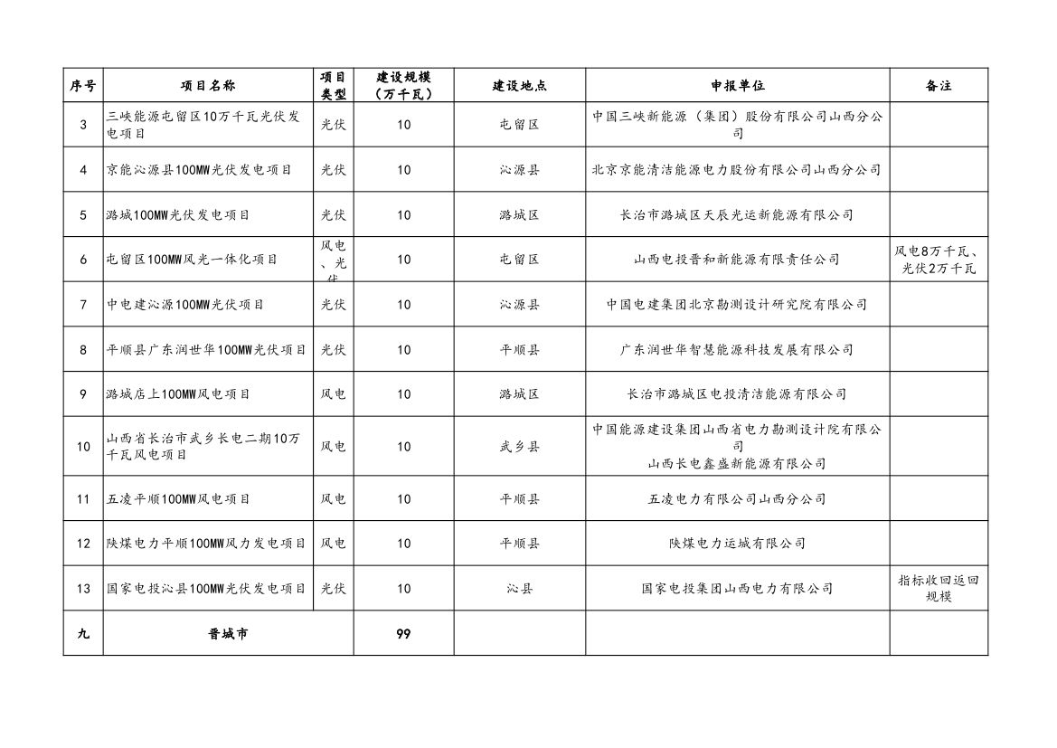 附件:山西省2023年風(fēng)電、光伏發(fā)電保障性并網(wǎng)項(xiàng)目清單