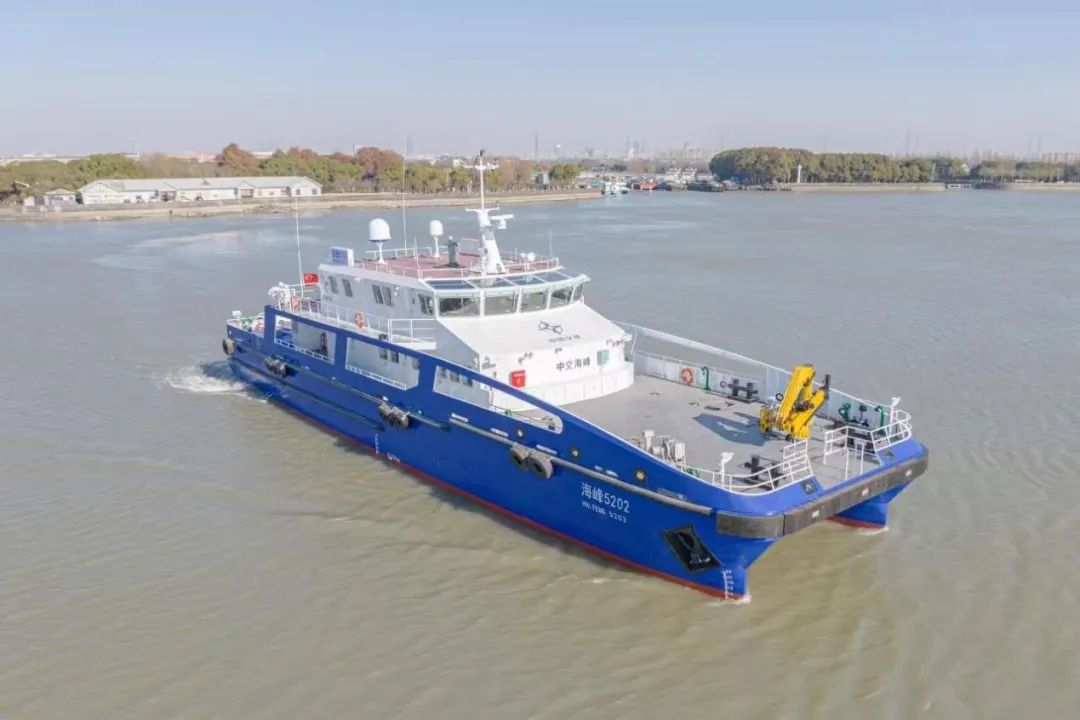 其中,“海峰5101”是中交海峰風(fēng)電首制全鋁合金高速風(fēng)電運(yùn)維船。該船入級(jí)中國(guó)船級(jí)社,全鋁雙體半小水線面船型,總長(zhǎng)33.2米,型寬10.8米,實(shí)船航速25.7節(jié),續(xù)航能力達(dá)到500海里,快速性好、耐波性優(yōu)異。