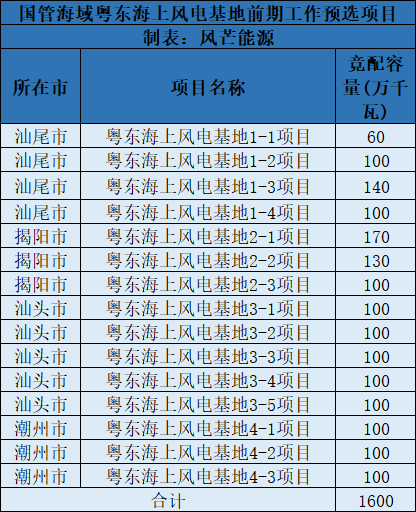 國(guó)管海域項(xiàng)目配置范圍。先安排15個(gè)、共1600萬千瓦的預(yù)選項(xiàng)目,其中汕頭市5個(gè)、500萬千瓦,汕尾市4個(gè)、400萬千瓦,揭陽市3個(gè)、400萬千瓦,潮州市3個(gè)、300萬千瓦;再從中遴選出800萬千瓦的項(xiàng)目作為開展前期工作的示范項(xiàng)目。