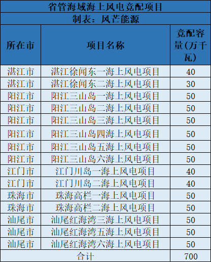 近日,廣東省發(fā)布《廣東省2023年海上風(fēng)電項(xiàng)目競(jìng)爭(zhēng)配置工作方案》指出,省管海域項(xiàng)目配置范圍。共15個(gè)項(xiàng)目、裝機(jī)容量700萬千瓦,包括湛江市2個(gè)、70萬千瓦,陽江市6個(gè)、300萬千瓦,江門市2個(gè)、80萬千瓦,珠海市2個(gè)、100萬千瓦,汕尾市3個(gè)、150萬千瓦。