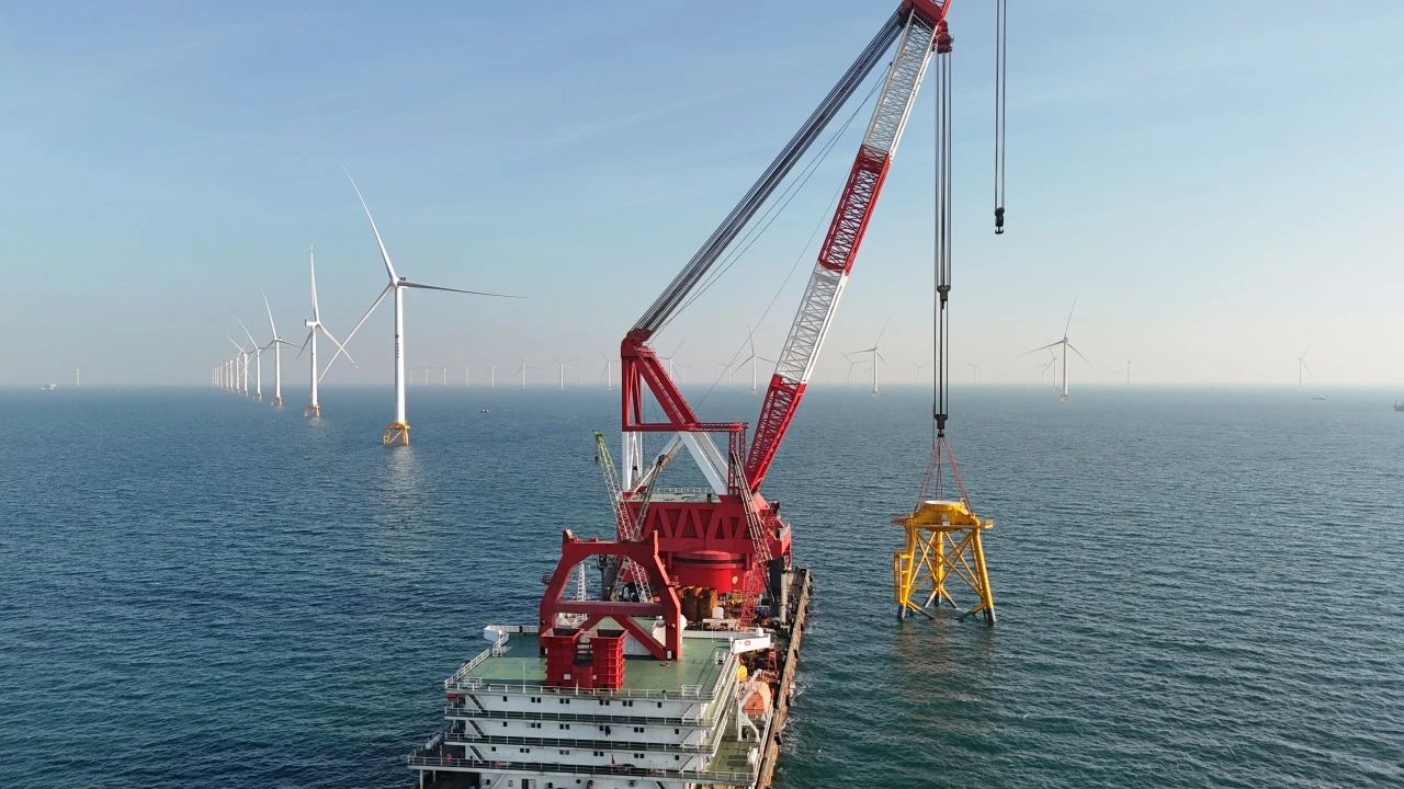 項(xiàng)目標(biāo)段二自2024年1月開展風(fēng)機(jī)基礎(chǔ)鋼結(jié)構(gòu)制作,至2024年12月全容量并網(wǎng),實(shí)現(xiàn)了“當(dāng)年開工、當(dāng)年全容量并網(wǎng)”目標(biāo),為國內(nèi)海上風(fēng)電嵌巖場址建設(shè)提供了扎實(shí)的“能建方案”。