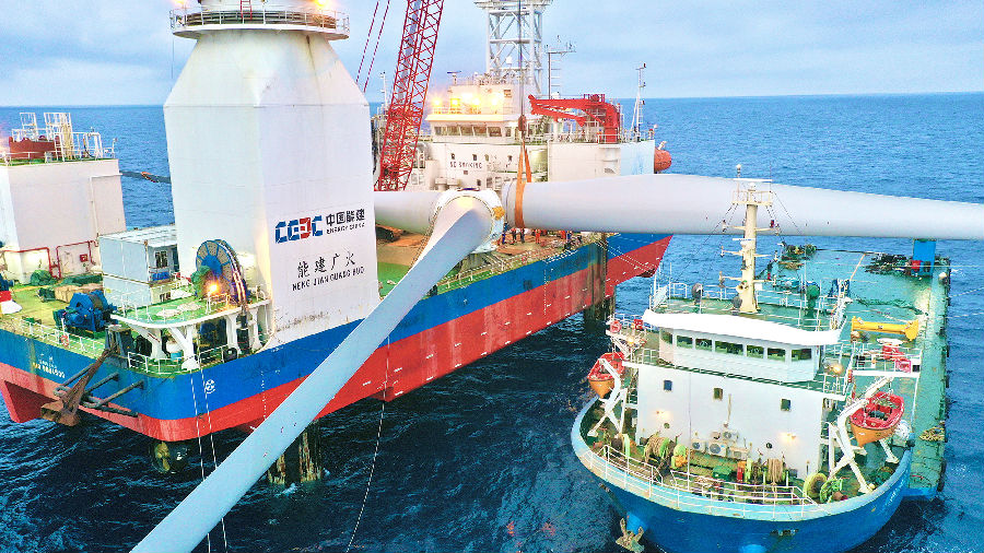 5月6日,由中國能建廣東院勘察設(shè)計、廣東火電參建的國內(nèi)首個近海深水區(qū)海上風(fēng)電場——華電陽江青洲三500兆瓦海上風(fēng)電場完成首臺風(fēng)機(jī)吊裝。