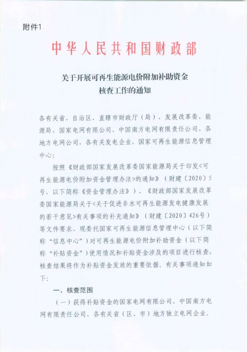 近日,財政部經(jīng)濟建設司、國家發(fā)改委價格司、國家能源局新能源司聯(lián)合印發(fā)《關于開展可再生能源電價附加補助資金核查工作的通知》,委托國家可再生能源信息管理中心對可再生能源電價附加補助資金使用情況、涉及項目進行核查。