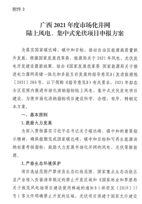 廣西壯族自治區(qū)發(fā)展和改革委員會關(guān)于申報(bào)2021年陸上風(fēng)電、光伏發(fā)電項(xiàng)目的通知