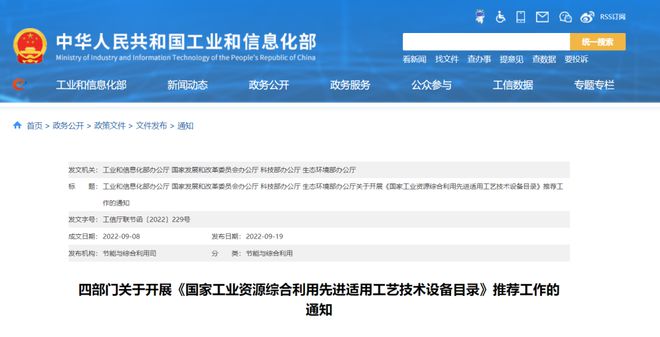 四部門關(guān)于開展《國(guó)家工業(yè)資源綜合利用先進(jìn)適用工藝技術(shù)設(shè)備目錄》推薦工作的通知
