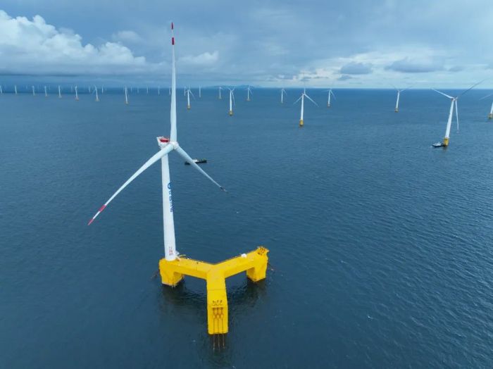 本網(wǎng)訊(黃克瑤 馬冠樸)中國(guó)南海,離岸28公里,水深30米之處,一臺(tái)高近百米的風(fēng)電機(jī)組矗立在三角結(jié)構(gòu)的漂浮平臺(tái)之上,遠(yuǎn)遠(yuǎn)望去,“三峽引領(lǐng)號(hào)”標(biāo)識(shí)赫然醒目,那葉片轉(zhuǎn)動(dòng)1小時(shí),滿發(fā)5500千瓦時(shí)電量可夠一個(gè)三口之家用上兩年。