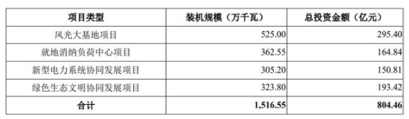 本次募集資金將投入風(fēng)力發(fā)電、太陽(yáng)能發(fā)電項(xiàng)目建設(shè)以及補(bǔ)充流動(dòng)資金,其中,補(bǔ)充流動(dòng)資金擬使用募集資金約90億元,投入風(fēng)力發(fā)電、太陽(yáng)能發(fā)電項(xiàng)目建設(shè)擬使用募集資金約210億元,項(xiàng)目情況如下: