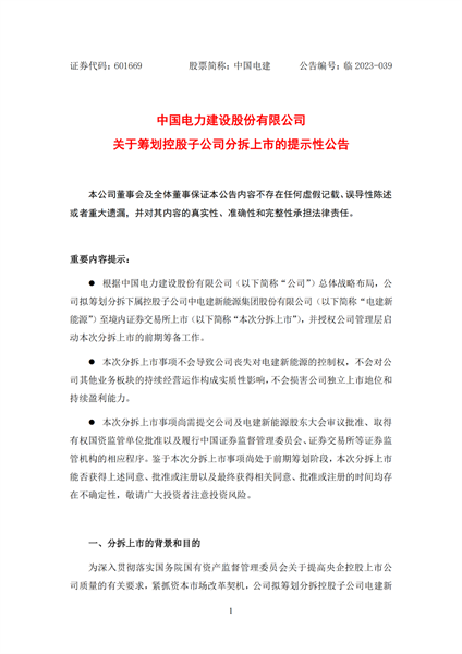 重磅!中國電建擬分拆新能源業(yè)務(wù)獨立上市!
