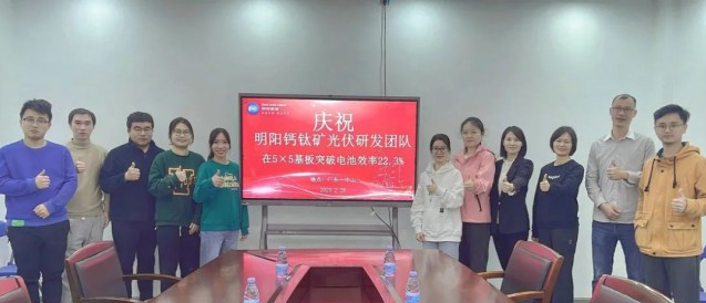 近日,明陽集團薄膜光伏研發(fā)團隊捷報頻傳,不僅在碲化鎘電池研發(fā)上碩果累累,在鈣鈦礦電池研發(fā)再次取得重大突破。經(jīng)測試,在5×5尺寸基板上電池效率達22.30%,創(chuàng)造了鈣鈦礦薄膜電池效率新紀錄。