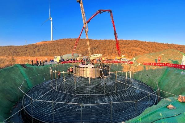 在河南省嵩縣項目建設(shè)現(xiàn)場,一派熱火朝天的施工景象。嚴(yán)寒天氣中,中國節(jié)能首個產(chǎn)業(yè)助力鄉(xiāng)村振興重點項目——中節(jié)能嵩縣九皋鎮(zhèn)風(fēng)電場項目工程現(xiàn)場塔吊林立,運(yùn)輸車輛往來穿梭,基礎(chǔ)澆筑井然有序,以一個個風(fēng)機(jī)基礎(chǔ)構(gòu)成的“同心圓”應(yīng)了農(nóng)歷新年“和美團(tuán)圓”之意。