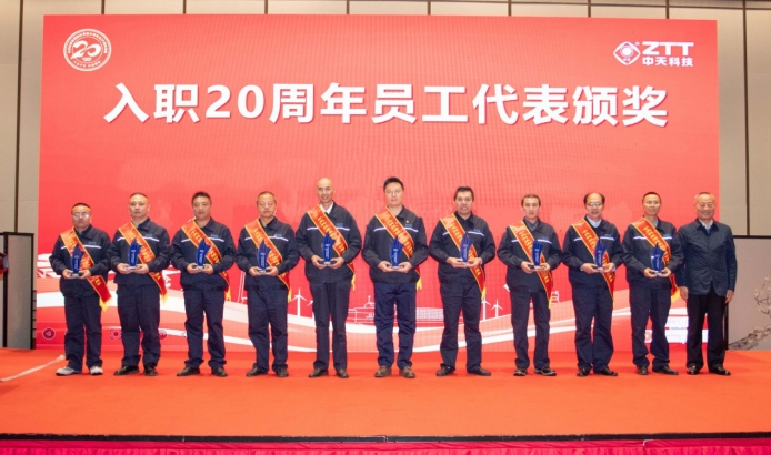 大會回顧了中天海纜二十年來的發(fā)展歷程,發(fā)布高壓海纜、高壓陸纜新產(chǎn)品新技術(shù)成果。會議表彰了在中天海纜奮斗20年的員工,薛濟萍為員工代表頒發(fā)履職20周年紀念獎杯。