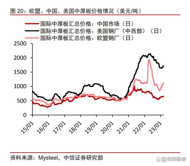 海外塔筒樁基生產(chǎn)成本高昂,國(guó)內(nèi)成本優(yōu)勢(shì)強(qiáng)化。對(duì)比歐洲單樁龍頭 Sif 平均出貨價(jià) 格近 2500 歐元/噸(約合人民幣 1.9 萬(wàn)元/噸),且供需緊縮呈價(jià)漲趨勢(shì),我國(guó)單樁價(jià)格約 0.8 萬(wàn)元/噸。在原材料成本方面,以天風(fēng)順能披露的數(shù)據(jù)為例,鋼材、法蘭等原材料成本 占塔筒總成本的 82%,其中鋼板(中厚板)成本占 57%,對(duì)比俄烏戰(zhàn)爭(zhēng)爆發(fā)以來(lái)的歐洲 鋼材價(jià)格暴漲,中厚板國(guó)內(nèi)外價(jià)差拉大。2023 年 3 月歐盟鋼廠中厚板均價(jià) 1100 美元/噸, 美國(guó)鋼廠均價(jià) 1710 美元/噸,而中國(guó)市場(chǎng)均價(jià) 649 美元/噸。在人工成本方面,根據(jù)歐盟披 露,歐盟本地塔筒企業(yè)的人均人工成本為 4.8 萬(wàn)歐元/年,明顯高于國(guó)內(nèi)主要塔筒企業(yè)的人 均薪酬。我們預(yù)計(jì)塔筒環(huán)節(jié)有望進(jìn)一步強(qiáng)化國(guó)產(chǎn)出海的成本優(yōu)勢(shì),樁基環(huán)節(jié)暫無(wú)反傾銷限 制,有望實(shí)現(xiàn)產(chǎn)品出口的突破。