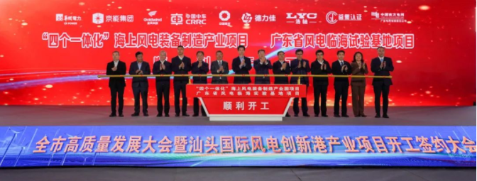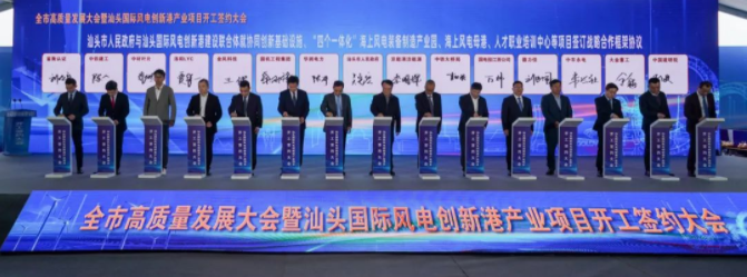 大會云集了金風(fēng)科技、中車永濟、德力佳、中材科技、北京鑒衡、華潤電力、京能集團等國內(nèi)海上風(fēng)電裝備制造龍頭企業(yè)及能源企業(yè),為海上風(fēng)電母港、“四個一體化”海上風(fēng)電裝備制造產(chǎn)業(yè)園、廣東省臨海試驗基地項目等一批海上風(fēng)電產(chǎn)業(yè)關(guān)鍵環(huán)節(jié)重點項目舉辦了集中簽約開工儀式,正式拉開了汕頭國際風(fēng)電創(chuàng)新港建設(shè)熱潮!