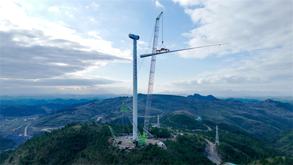 三都縣位于貴州省黔南州東南部,地處“月亮山、雷公山”腹地,境內(nèi)以山地為主,風力資源豐富,點多面廣,電網(wǎng)接入條件優(yōu)良,消納能力強,新能源風電項目建設(shè)前景廣闊。11月24日,三都縣風電場項目之一的周覃風電場,兩臺高120多米的風力發(fā)電機屹立在山頂上,工人們正在對塔上設(shè)備開展偏航、安全鏈、控制等調(diào)試工作。