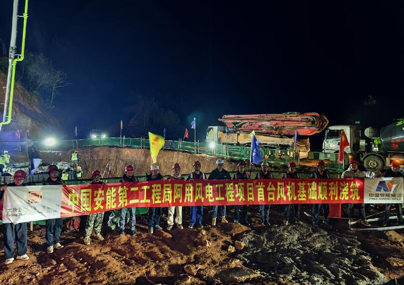 云南阿用風(fēng)電項目首臺風(fēng)機(jī)基礎(chǔ)順利澆筑完成