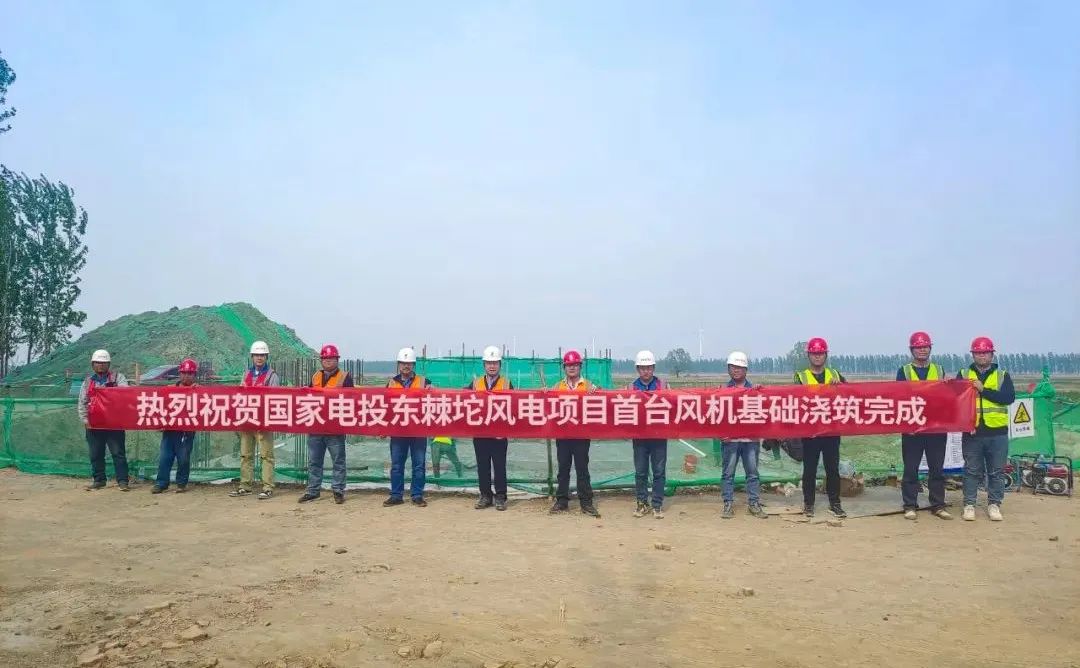 4月22日,國家電投河北公司(雄安公司)北京公司天津?qū)幒訓(xùn)|棘坨50兆瓦風(fēng)電項目首臺風(fēng)機基礎(chǔ)澆筑順利完成。