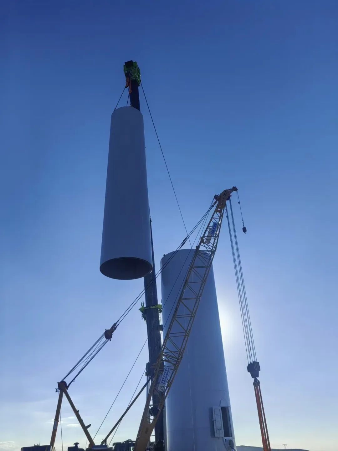 該項目位于新疆維吾爾自治區(qū)昌吉回族自治州木壘縣大石頭村一帶,距離木壘縣約70千米處,場址海拔1400-2100米,場址為低中山丘陵地貌,地勢開闊,地形起伏。該項目單機(jī)容量10兆瓦,是陸上單機(jī)容量最大的風(fēng)電機(jī)組,單機(jī)共5段,其中T1、T2段為分片式塔架,輪轂高度118米,單段最大重量約111噸。