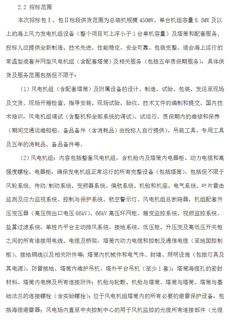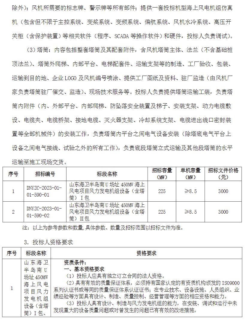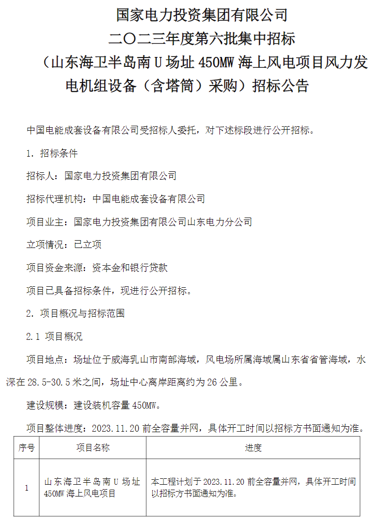國家電投450MW海上風電項目機組采購招標,單機要求≥8.5MW