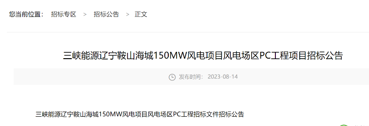 公告顯示,三峽能源遼寧鞍山海城150MW風電項目位于遼寧省鞍山市海城市的接文鎮(zhèn)、馬風鎮(zhèn)、析木鎮(zhèn)、王石鎮(zhèn)、岔溝鎮(zhèn)境內(nèi),屬內(nèi)陸山地風電場,場址中心距沈陽市約120km,距離鞍山市約45km,距離海城市約25km。風電場總裝機容量150MW,擬安裝24臺型號為GWH204-6.25風力發(fā)電機組,單機容量6250kW,配套新建一座220kV升壓站,并配置15MW/30MWh儲能系統(tǒng)。