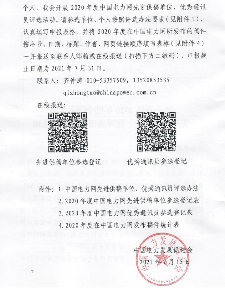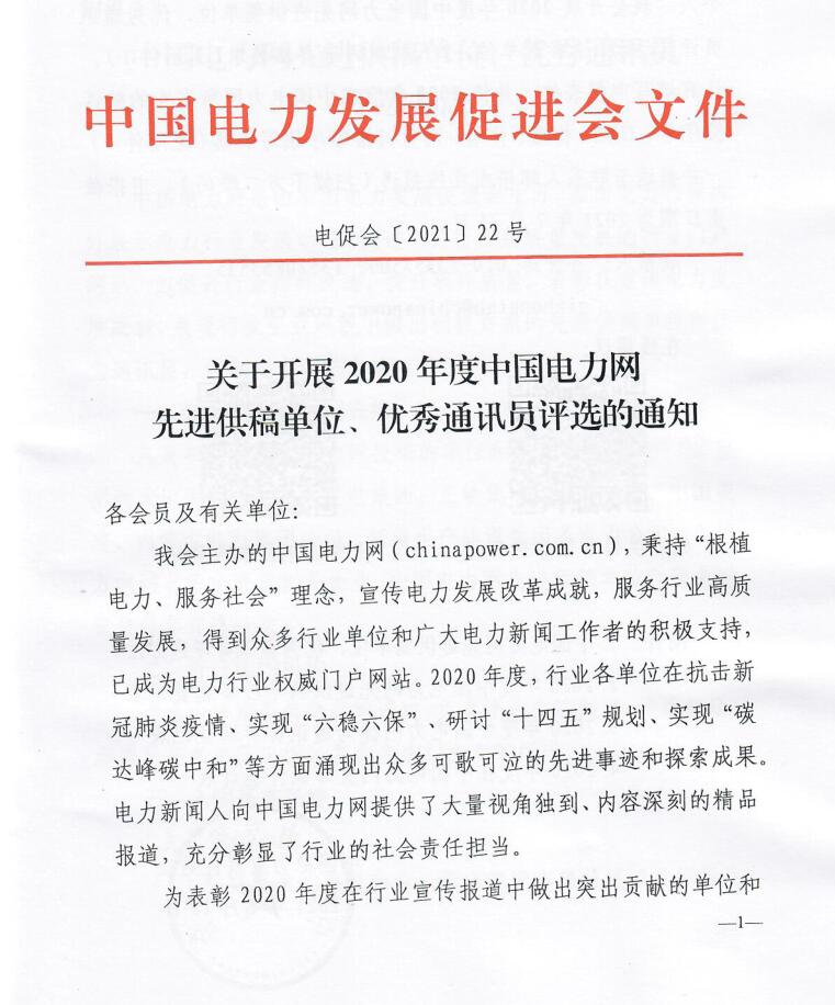 關于開展“中國電力網(wǎng)2020年度先進供稿單位、優(yōu)秀通訊員”評選活動的通知