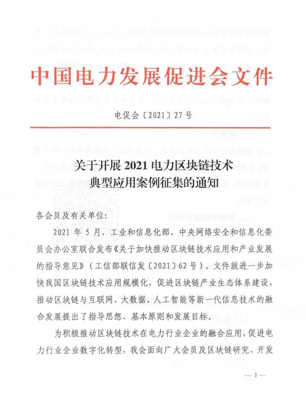 2021電力區(qū)塊鏈典型應用案例征集通知