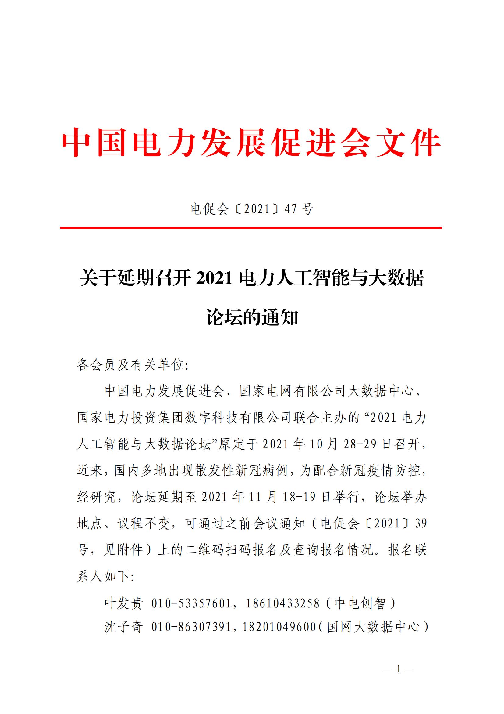 關(guān)于延期召開2021電力人工智能與大數(shù)據(jù)論壇的通知