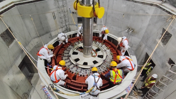 春節(jié)前夕,斯里蘭卡莫拉戈拉水電站2號機(jī)轉(zhuǎn)子順利吊裝就位。吊裝過程中,現(xiàn)場指揮指令清晰,人員操作準(zhǔn)確,定子上方人員防護(hù)到位,定轉(zhuǎn)子間隙、水發(fā)聯(lián)軸方位、制動環(huán)板間隙等監(jiān)測人員細(xì)心負(fù)責(zé),吊裝步驟按照方案及交底有序進(jìn)行,展示出電建人高度的責(zé)任感和精湛的技術(shù)水平。(陳敏元)