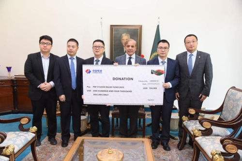 在洪水發(fā)生后,中國(guó)電建作為全巴中資企業(yè)會(huì)長(zhǎng)單位,立即采取行動(dòng),號(hào)召全巴中資企業(yè)為救災(zāi)捐款捐物,28家中資企業(yè)相繼慷慨解囊,在8月26日完成了1550萬(wàn)盧比(約合49萬(wàn)人民幣)捐款。