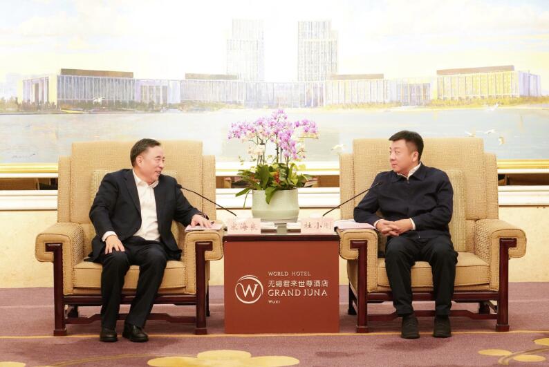 杜小剛對宋海良一行到訪表示歡迎,對中國能建為無錫發(fā)展作出的貢獻表示感謝,并簡要介紹了無錫市經濟社會發(fā)展情況。他說,當前,無錫正全面落實習近平總書記視察江蘇重要講話指示精神,大力推進能源綠色低碳轉型、資本金融產業(yè)和基礎設施建設,加快打造新時代工商名城,爭當踐行新發(fā)展理念高質量發(fā)展示范區(qū)和中國式現(xiàn)代化建設的城市范例,呈現(xiàn)出良好的發(fā)展態(tài)勢。他表示,中國能建是我國能源電力、基礎設施建設國家隊、主力軍,企業(yè)業(yè)務布局與無錫市未來發(fā)展戰(zhàn)略高度契合,雙方合作空間廣闊,希望中國能建持續(xù)關注無錫、加碼無錫,聚焦新興產業(yè)、未來產業(yè)等方向,發(fā)揮企業(yè)經營優(yōu)勢、科技優(yōu)勢、資源優(yōu)勢,導入更多城市建設、生態(tài)治理、軌道交通、市政配套等資源,合力搶占新能源產業(yè)新賽道,助力無錫奮力在國家“強起來”的歷史進程中烙下鮮明印記。無錫將提供最優(yōu)質服務、營造最優(yōu)良環(huán)境,與中國能建并肩扛起新使命、攜手譜寫新篇章,樹立新時代央地合作新典范,合力為高質量發(fā)展大局作出更大貢獻。