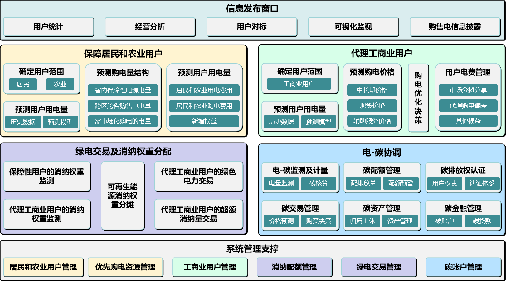 2021年11月30日,信產(chǎn)中電普華公司在能源研究會能源互聯(lián)網(wǎng)專委會上發(fā)布代理購電決策支撐工具平臺。代理購電決策支撐工具平臺的主要功能包括:保障居民與農(nóng)業(yè)用戶管理、代理工商業(yè)用戶管理、綠電交易及消納權重分配管理、電碳協(xié)調(diào)管理、信息發(fā)布窗口及系統(tǒng)管理支撐功能六大功能模塊。