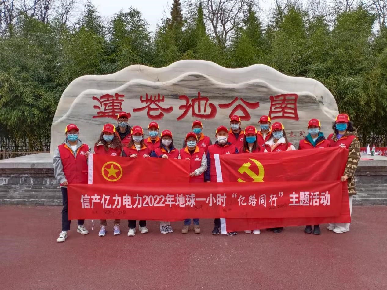 為積極宣傳地球一小時公益環(huán)保理念,落實“雙碳”目標,促進節(jié)能環(huán)保,積極支持全球應對氣候變暖行動,不斷深化國家電網(wǎng)思極先鋒“億心e意”共產(chǎn)黨員服務隊志愿服務能力,3月25日下午,信產(chǎn)億力電力黨支部在蓮花池公園組織開展2022年地球一小時“億路同行”主題系列活動啟動式暨蓮花池公園清潔志愿服務。信產(chǎn)億力電力黨員干部、黨員發(fā)展對象、入黨積極分子、團員和統(tǒng)一戰(zhàn)線成員等16人共同參與。