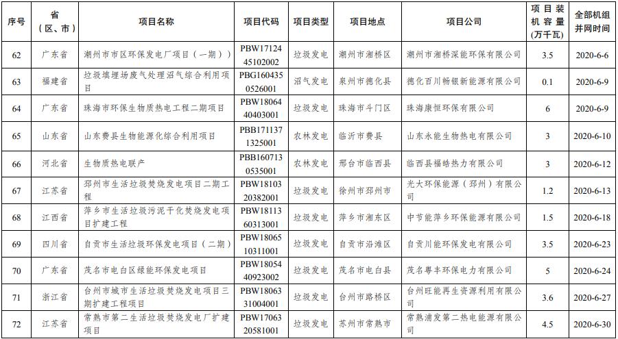 關(guān)于公布2020年生物質(zhì)發(fā)電中央補(bǔ)貼項(xiàng)目申報(bào)結(jié)果的通知