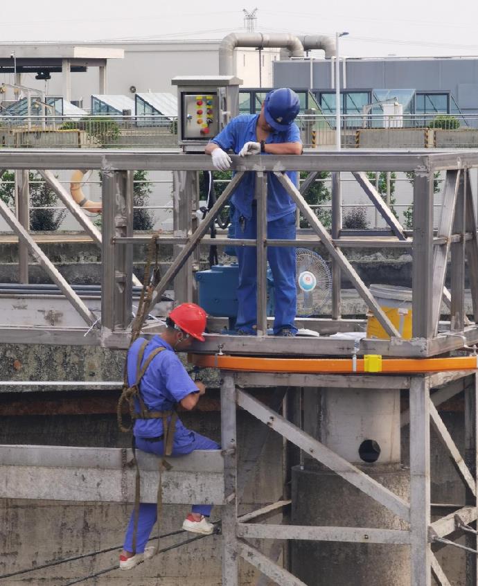 他們在敢想的前提下,不斷推翻不斷重建的過程,最終為生化池探頭清洗找到了最優(yōu)解。在這過程中,更需要他們不怕困難。生化池內(nèi)部作業(yè)空間狹小,作業(yè)人員只能長時(shí)間弓著身子操作,負(fù)責(zé)安裝的李強(qiáng)因?yàn)殚L時(shí)間彎腰作業(yè),在安裝完工后腰疼在家躺了整整一天。同時(shí)他們還得克服墻面凹凸、粗糙且鋒利,稍有不慎輕則劃破衣物,重則破皮流血的風(fēng)險(xiǎn)。據(jù)說,總經(jīng)理王世雄在現(xiàn)場技術(shù)指導(dǎo)期間,頭上的安全帽就新增幾十處深淺不一的撞痕。