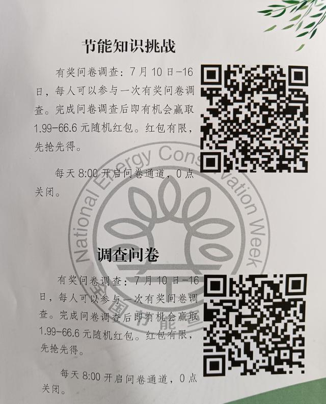 此外,記者還了解到,主辦方搭建了線上有獎節(jié)能知識挑戰(zhàn)賽和調(diào)查問卷平臺,從7月10日到7月16日,平臺每天8時開啟問卷通道,0時關(guān)閉。完成挑戰(zhàn)則有機會獲得最高66.6元的現(xiàn)金紅包。紅包有限,先搶先得。