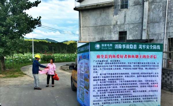 該公司利用宣傳車在大街小巷宣傳“致全縣釣魚(yú)愛(ài)好者和魚(yú)塘主的公開(kāi)信”,并要求各供電所發(fā)動(dòng)臺(tái)區(qū)管理員展開(kāi)走訪活動(dòng)。該公司各供電所向垂釣者、周邊用戶發(fā)放宣傳資料,現(xiàn)場(chǎng)講解在電力設(shè)施周圍垂釣的危害性和危險(xiǎn)性,呼吁廣大垂釣者安全、科學(xué)、有序的垂釣,自覺(jué)遠(yuǎn)離高壓線路,且發(fā)現(xiàn)有人在線下垂釣立即勸阻,避免停電風(fēng)險(xiǎn)。此次宣傳活動(dòng)不僅宣傳了安全垂釣的相關(guān)知識(shí),還提高了群眾電力安全的意識(shí)和自我保護(hù)能力,切實(shí)保障垂釣安全。