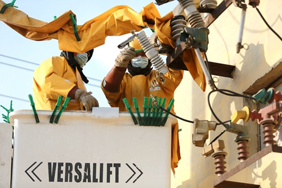 中國電力網(wǎng)訊 1月11日,在濰坊壽光市東羅橋村,國網(wǎng)壽光市供電公司帶電作業(yè)人員冒著嚴(yán)寒,對10千伏羅橋線東羅1號分支線004號桿損壞的跌落開關(guān)進行緊急搶修,全面消除線路運行缺陷,為農(nóng)村客戶溫暖度冬提供可靠供電保障。