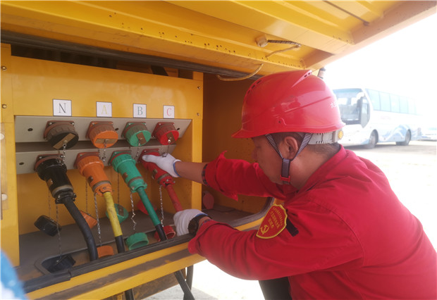 在接到開工儀式保電工作任務后,六五四供電分局高度重視,積極對接政府部門,了解用電需求,制訂詳細的保供電方案,落實專人負責、服務到位,提前一天組織分局黨員突擊隊的保電人員對涉及活動區(qū)域的重要線路和電力設備開展常態(tài)巡視,排查并消除可能出現(xiàn)影響正常供電的安全隱患和缺陷,保障保電工作零故障、零停運,并根據(jù)現(xiàn)場需要,準備發(fā)電車一輛供儀式現(xiàn)場用電設備使用,全力打造項目開工儀式保電安全網(wǎng)?;顒赢斎丈衔?,工作人員及發(fā)電車提前進入保電現(xiàn)場,連接、調(diào)試開工儀式用電設備,并對相關(guān)設備進行了檢查,蹲守保電現(xiàn)場,提高保電機動性,確保了開工儀式用電萬無一失。