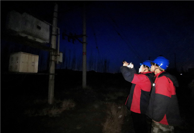 該公司為確保電網(wǎng)安全穩(wěn)定運行,認(rèn)真制定了線路特殊巡視計劃。此次巡視主要對區(qū)域內(nèi)重要線路進行防止外力破壞巡視、電氣連接部分有無發(fā)熱現(xiàn)象、大風(fēng)天氣過后線路有無搭掛異物、檢查桿塔基礎(chǔ)和電桿防撞標(biāo)識是否完好等。巡視人員不懼嚴(yán)寒,手持冰冷的儀器,全力以赴完成線路的巡視檢查工作。當(dāng)夜幕降臨,萬家燈火都亮了起來的時候,巡視人員又開始對線路、設(shè)備進行紅外線測溫工作。他們手持紅外線成像儀,重點對線路電氣連接點、真空開關(guān)、隔離開關(guān)、配電變壓器、電纜接頭等容易發(fā)生故障的位置進行了夜間巡視和紅外線測溫。